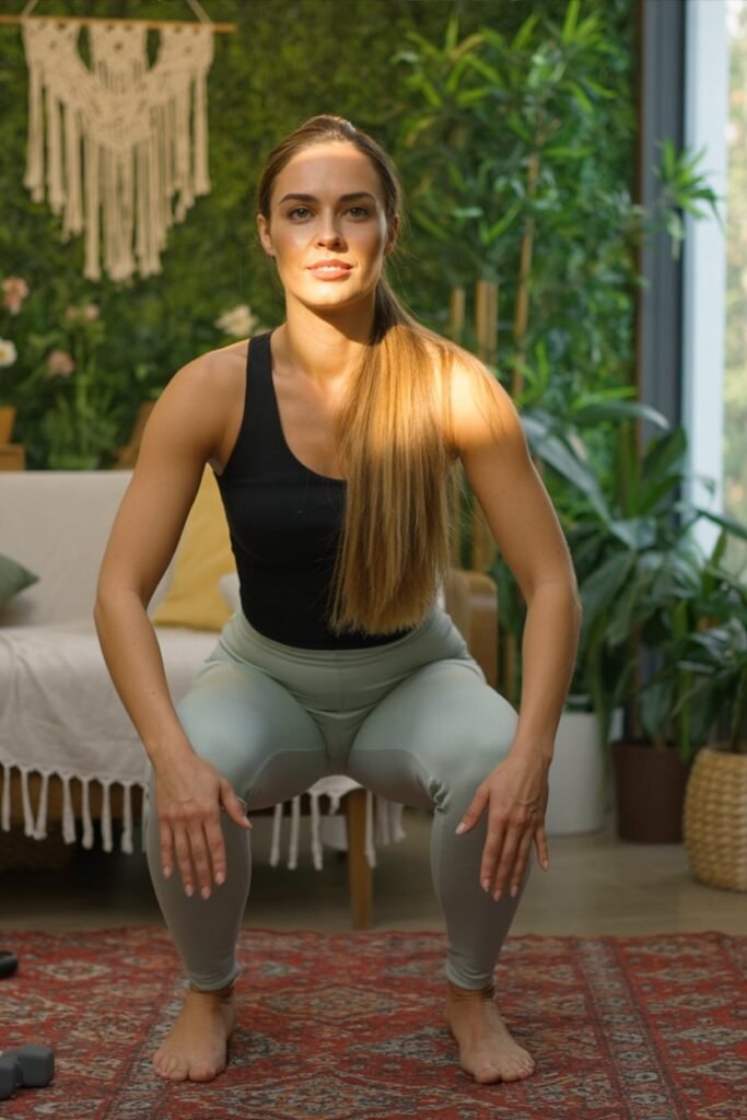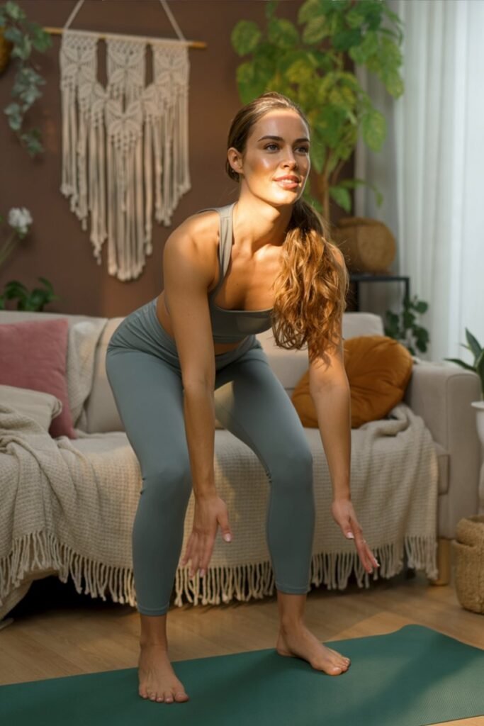 - Sumo squats: Wider stance, toes out, lower deep for inner thighs