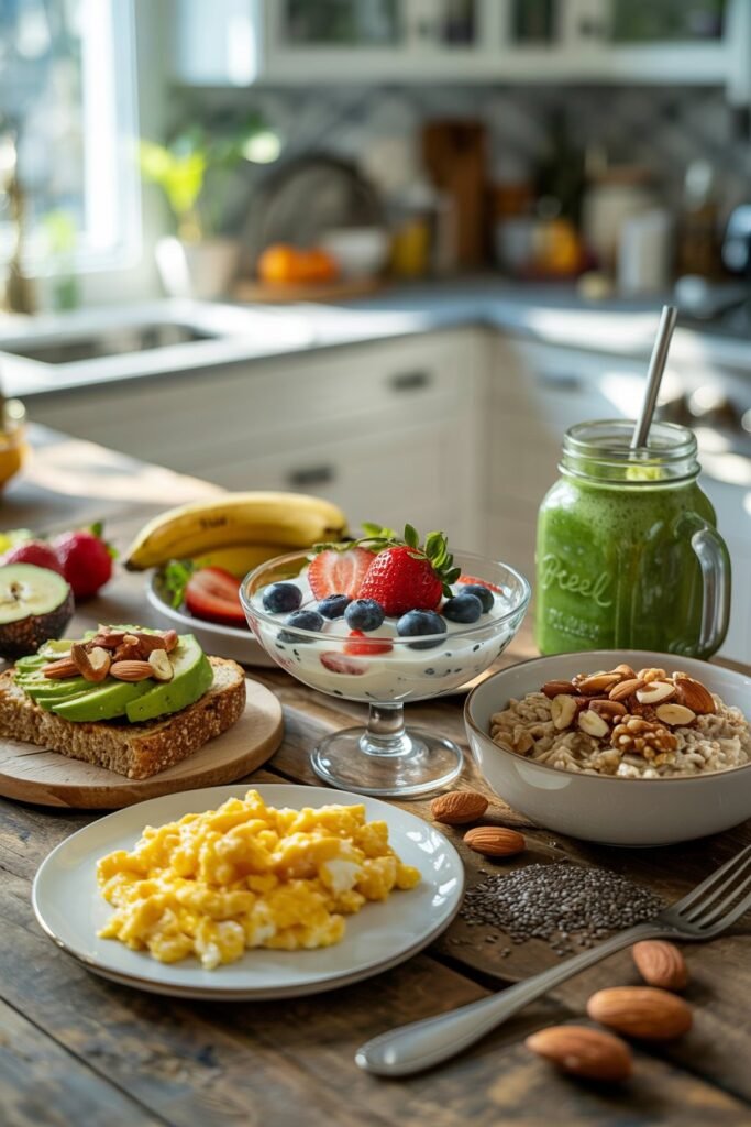 - Keep staples on hand: Greek yogurt, eggs, cottage cheese, protein powder, and frozen berries make it easy to assemble breakfast quickly.